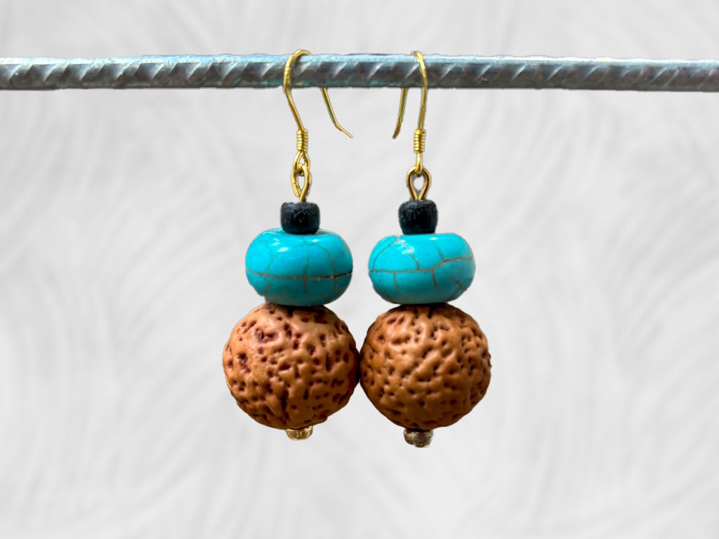 Natural quandong & turquoise earrings by Dja YingilaNatural quandong & turquoise earrings by Dja Yingila