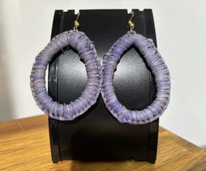 Hand woven purple earrings, made by Melissa Taylor