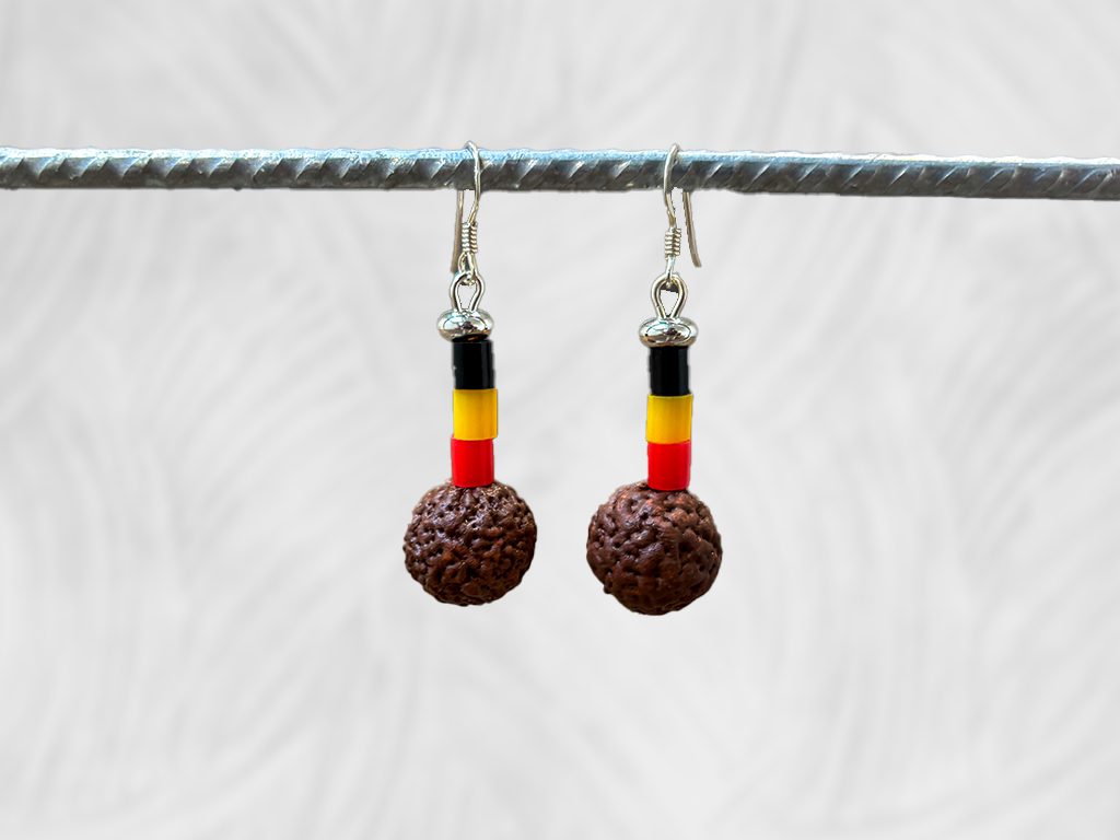 Quandong and coloured beads earrings by Dja YingilaAvailability: In stock