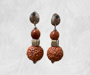 Hand made earrings with Quandong and Goldstone.