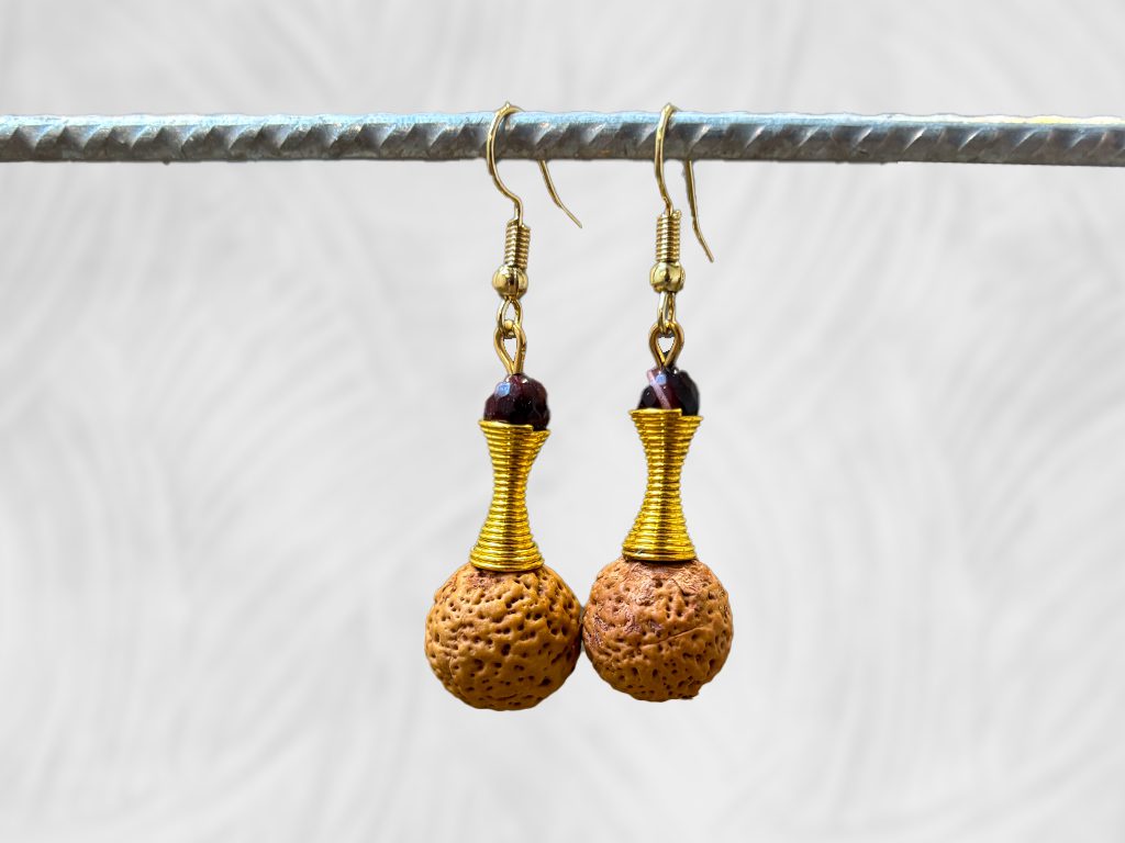 Quandong & Mookite, gold earrings by Dja Yingila